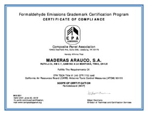 B_-_531_Maderas_Arauco_Teno_Chile_HCHO_Program_certificate_of_compliance_20180627 Publicado el 09-11-2018
